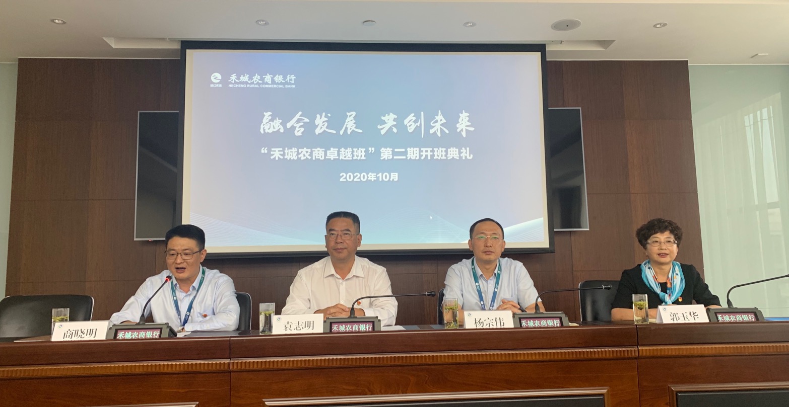 10月10日,由学院和禾城农商银行合作举办的第二届禾城农商金融卓越班开班仪式在禾城农商银行隆重举行。学院院长袁志明、商学系主任郭玉华、副主任刘勇、金融学专业负责人颜晔、数理系信息管理专业负责人吴煜祺、禾城农商银行行长杨宗伟、副行长商晓明以及30名第二届金融卓越班学员参加开班仪式。