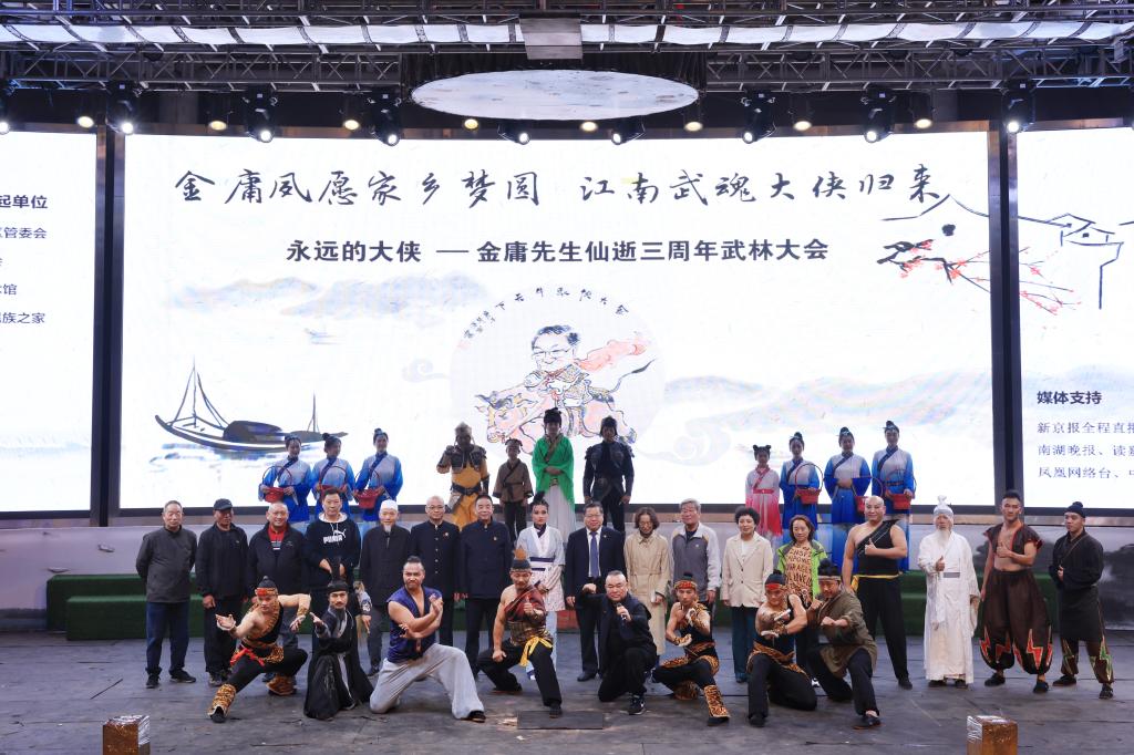 10月30日晚,由嘉兴市南湖新区管委会、嘉兴市武术协会、嘉兴市海华武术馆和嘉兴市南湖区民族之家共同发起举办的“永远的大侠——金庸先生仙逝三周年武林大会”在凌公塘主题公园中国斗牛馆举办。嘉兴市政协副主席、校党委书记盛付祥,副校长朱蓉及师生代表受邀参加活动。