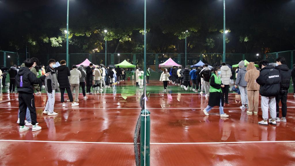 12月16日下午,接嘉兴市疫情防控指挥部通知,有一名密接者在我校有活动轨迹,为迅速切断传播链,根据市疫情防控领导小组办公室指令,我校第一时间启动应急响应机制,在足球场、网球场、篮球场设置多个核酸采样点,组织在校师生员工开展核酸检测。
