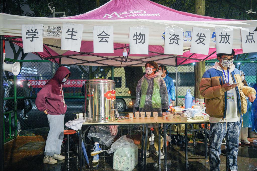 在学校疫情防控工作领导小组统一部署和集中领导下,相关部门及时响应,迅速集结学生党员、团员干部、南湖先锋连、大学生记者团等一批自愿者力量投入核酸检测保障工作中,并在现场设置物资保障点,为前来检测的师生员工提供雨衣、姜茶、口罩等物品。