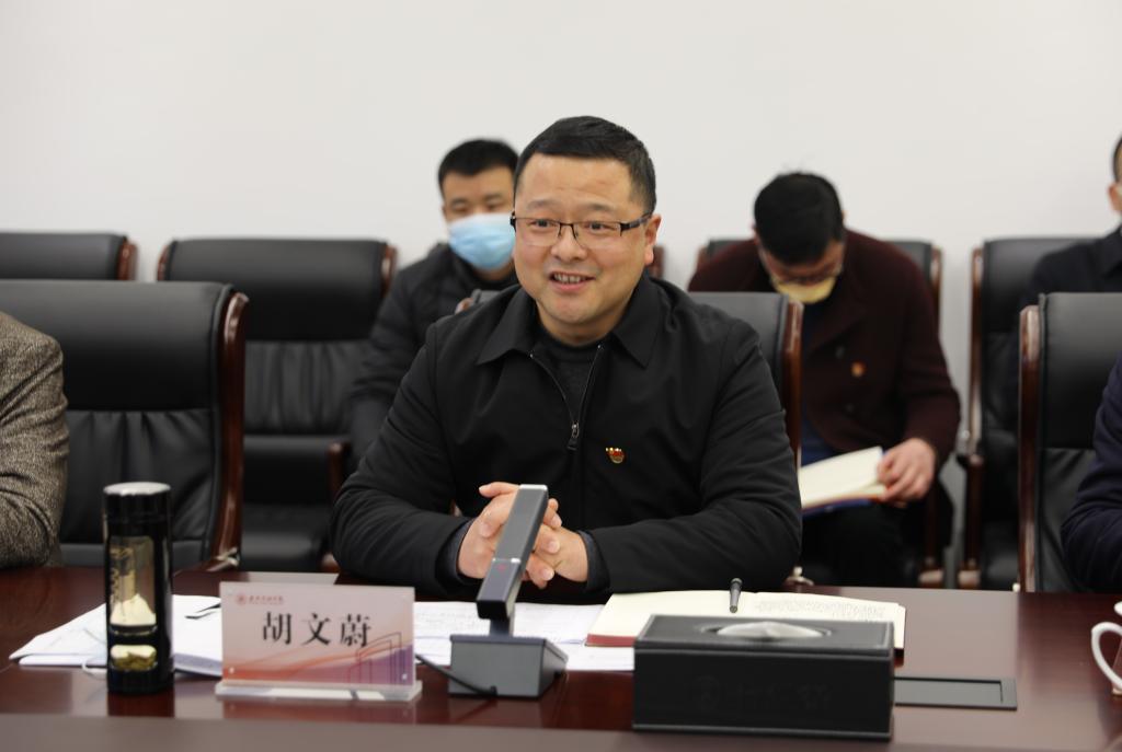 胡文蔚代表学校汇报疫情防控和开学准备情况,他表示学校党委高度重视疫情防控和2022年春季学期开学准备工作,坚持高标准严格落实省市疫情防控相关会议精神和文件要求,强化组织领导,健全学校疫情防控领导小组和工作专班,完善相关工作方案和预案;强化全员参与,积极教育引导师生员工切实树立“第一责任人”职责,全员协同做好疫情防控各项具体工作;强化责任落实,实施“网格化”管理,做到“不遗一人,不留死角”,严格落实好“守好自家门,看好自家人”要求;强化闭环管理,从进校前14天每日健康打卡,到进校前3天逐人审核审批,到进校日“测温验码”并提交书面“一人一档”承诺书,再到入校后14天校园封闭管理,从严从紧把好大门,校园全面消杀,继续做好健康监测,强化重点场所管控,大力推进疫苗接种,加强值守和应急准备,做到疫情防控各项管理工作闭环有效。胡文蔚还对照省厅《春季开学卫生防疫工作检查清单》29项指标要求向督导组逐条逐项汇报了学校机制制度建设和相关工作及准备情况,并表示接下来学校将始终绷紧疫情防控这根弦,认真落实主体责任,及时做好相关排查与管控工作,做到全面精准掌握师生员工行程和健康状况,确保疫情防控和开学平稳有序,师生平安健康返岗返学。