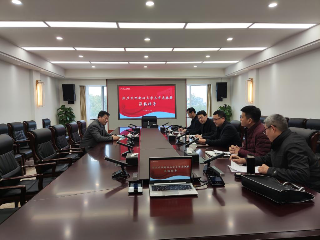 交流过程中,校党委副书记郭坚刚、胡文蔚和学校相关部门负责人与吕有志就马克思主义学院建设工作进行了深入探讨。郭坚刚简要介绍了学校转设后基本情况和马院建设的思路举措。吕有志教授结合浙江大学马克思主义学院的建设经验,对我校马克思主义学院建设工作从学科专业布局、人才引进、平台建设、共建联动、师资队伍培养和学生培养方向等方面提出了颇具建设性和针对性的意见和建议。