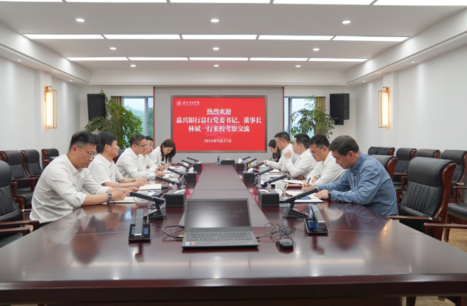5月27日下午,嘉兴银行总行党委书记、董事长林斌一行来校考察交流。校领导倪沪平、赵渊、沈岱峰出席。