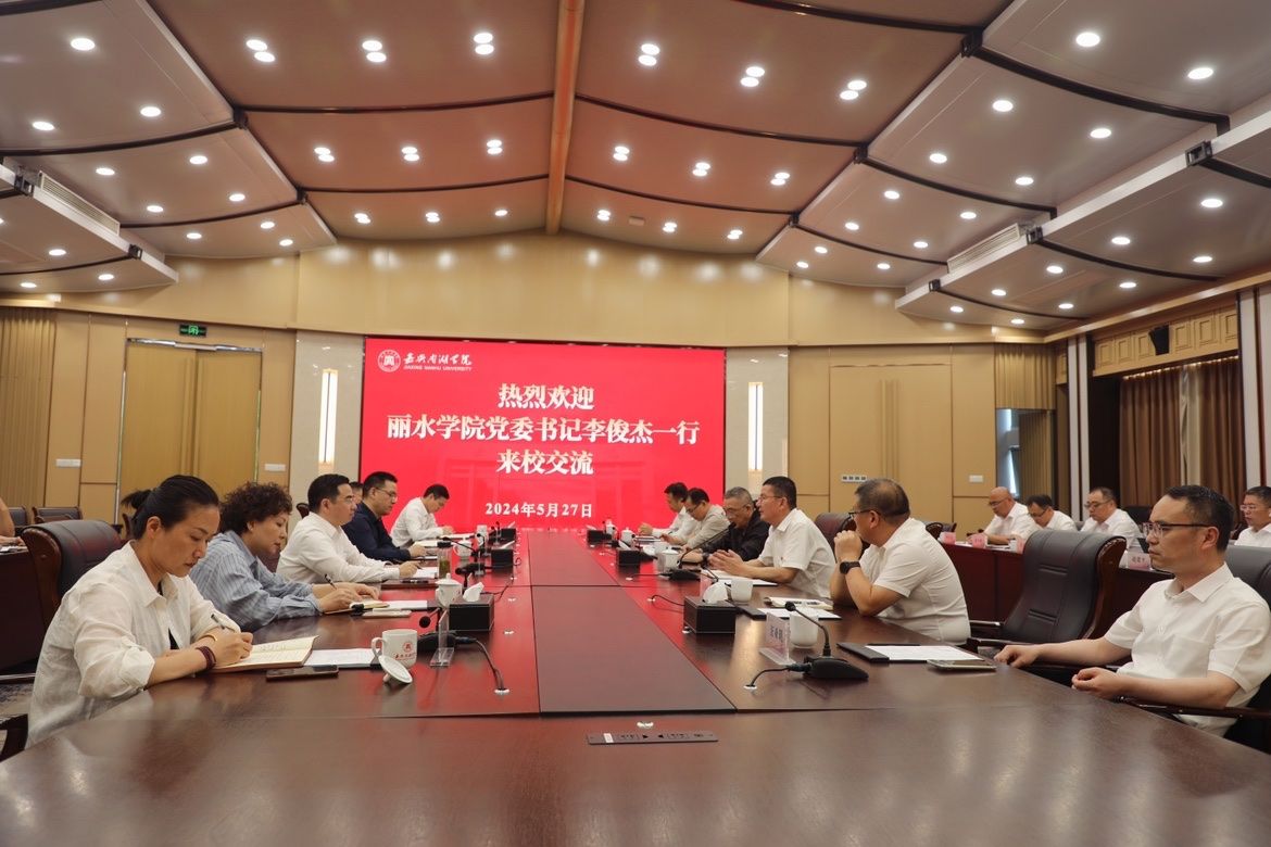 5月27日下午,丽水学院党委书记李俊杰一行来访,我校党委书记倪沪平接待李俊杰一行。双方就党纪教育、人才师资、人才培养等方面工作进行了深入交流,交流座谈前,我校校长贾文胜陪同李俊杰一行参观学校。
