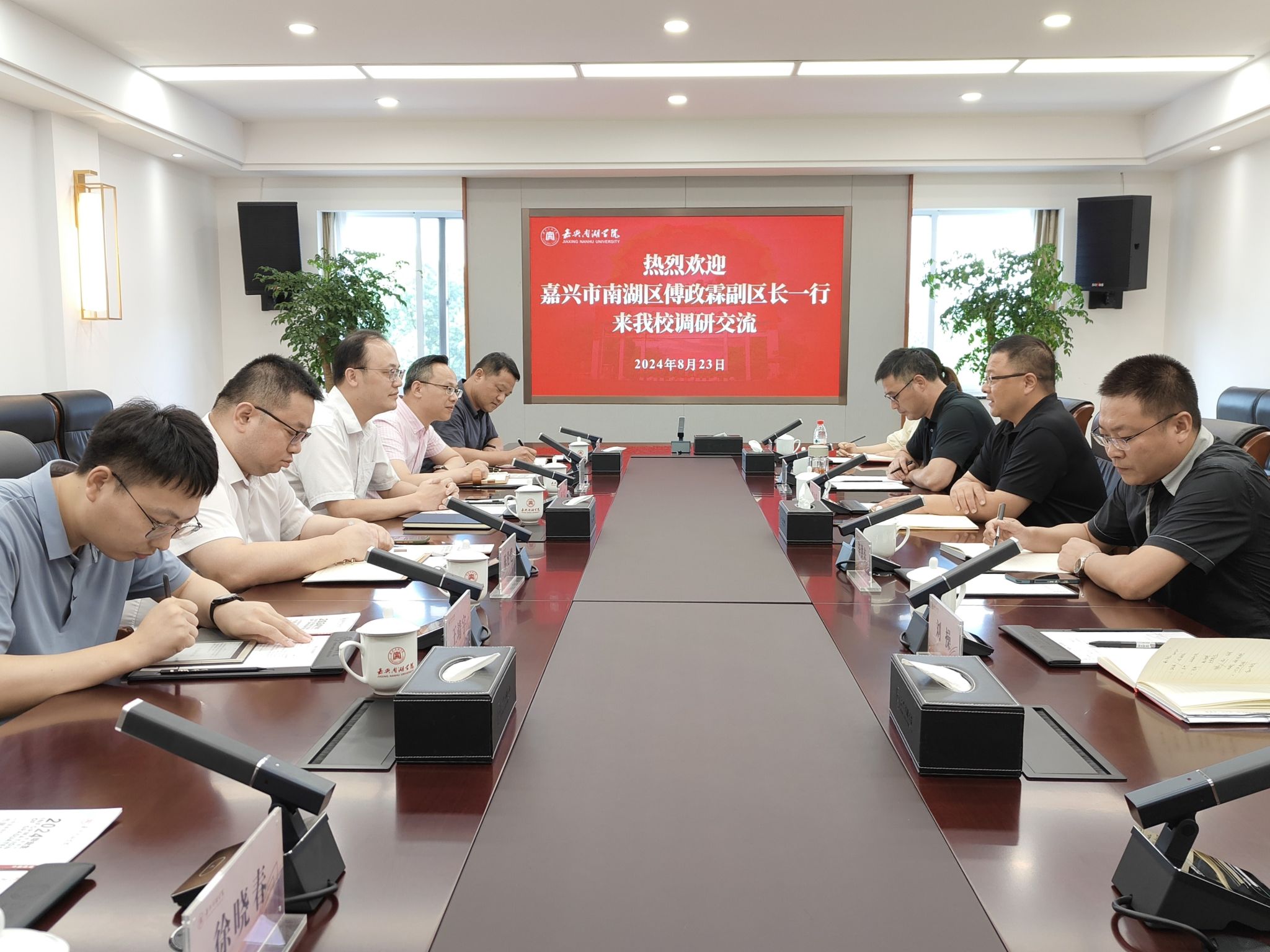 8月23日下午,嘉兴市南湖区政府副区长傅政霖率队来访,我校党委副书记胡文蔚接待傅政霖一行。双方就教学育人体系、学科专业设置、就业工作促进等方面工作展开深入交流。