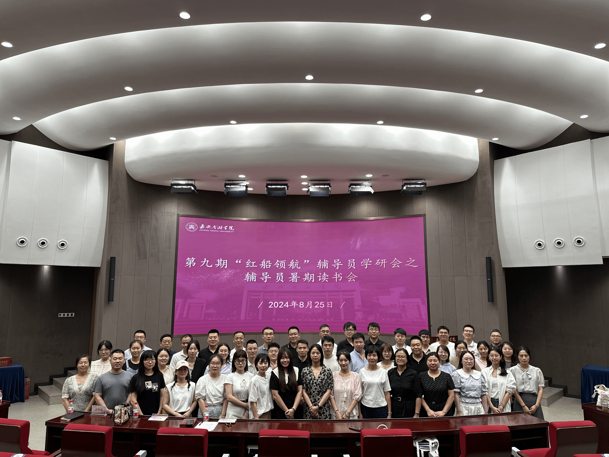 为进一步推进“时代新人铸魂工程”和一流辅导员队伍建设,提高我校辅导员的育人水平,8月25日,学校在第一报告厅举行第九期“红船领航”辅导员学研会暨辅导员暑期读书会,学工部负责人、各学院党委副书记、全体辅导员及学工部全体工作人员参加此次会议。