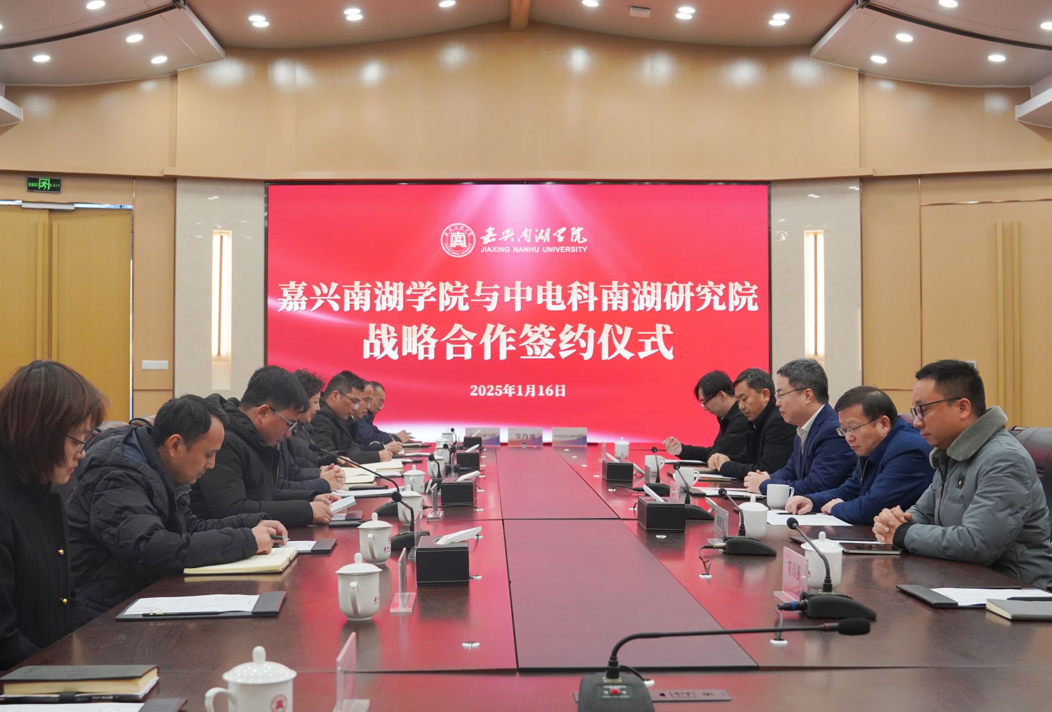 1月16日下午,学校与中国电子科技南湖研究院战略合作签约仪式在第六会议室举行。校党委书记倪沪平,南湖研究院院长、党委副书记章威出席并讲话。副校长朱蓉、南湖研究院常务副院长陈学军及两个单位相关部门负责人参加仪式。仪式由副校长赵渊主持。