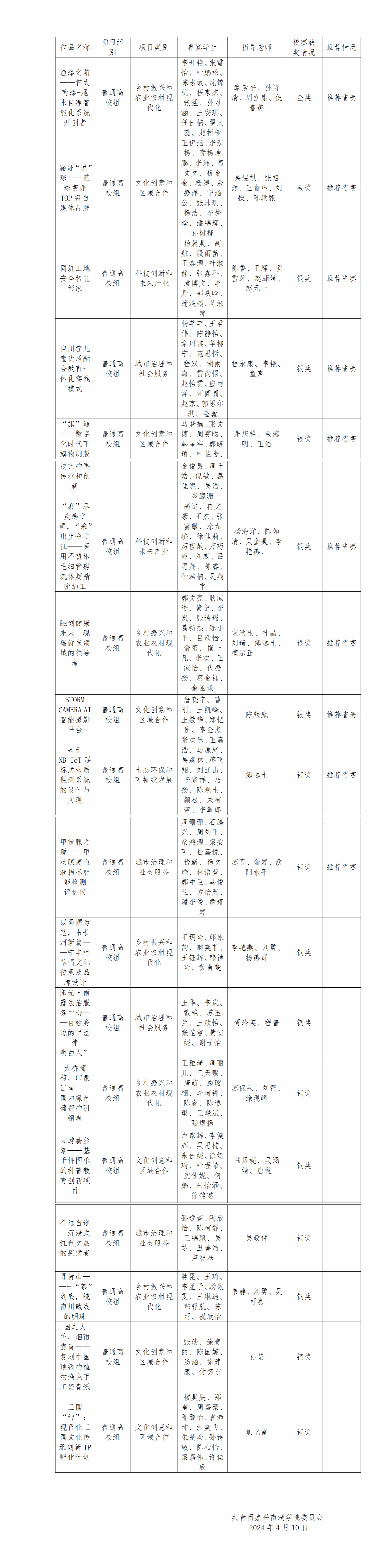 为确保本届参赛的公平、公正、公开,现将推荐作品信息予以公示,公示期:2024年4月10日-2024年4月12日,如有异议请联系:0573-83628160。